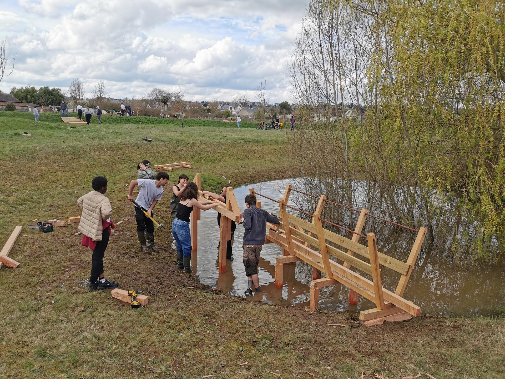 60 étudiants de quatre écoles blésoises (École de la Nature et du Paysage – INSA Centre-Val de Loire, lycée Camille Claudel, ETIC École de design et BTP-CFA 41) ont imaginé et réalisé de A à Z ces installations en tenant compte du paysage et de l’environnement du site, encadrés par leurs professeurs et la designer Louise Rué.