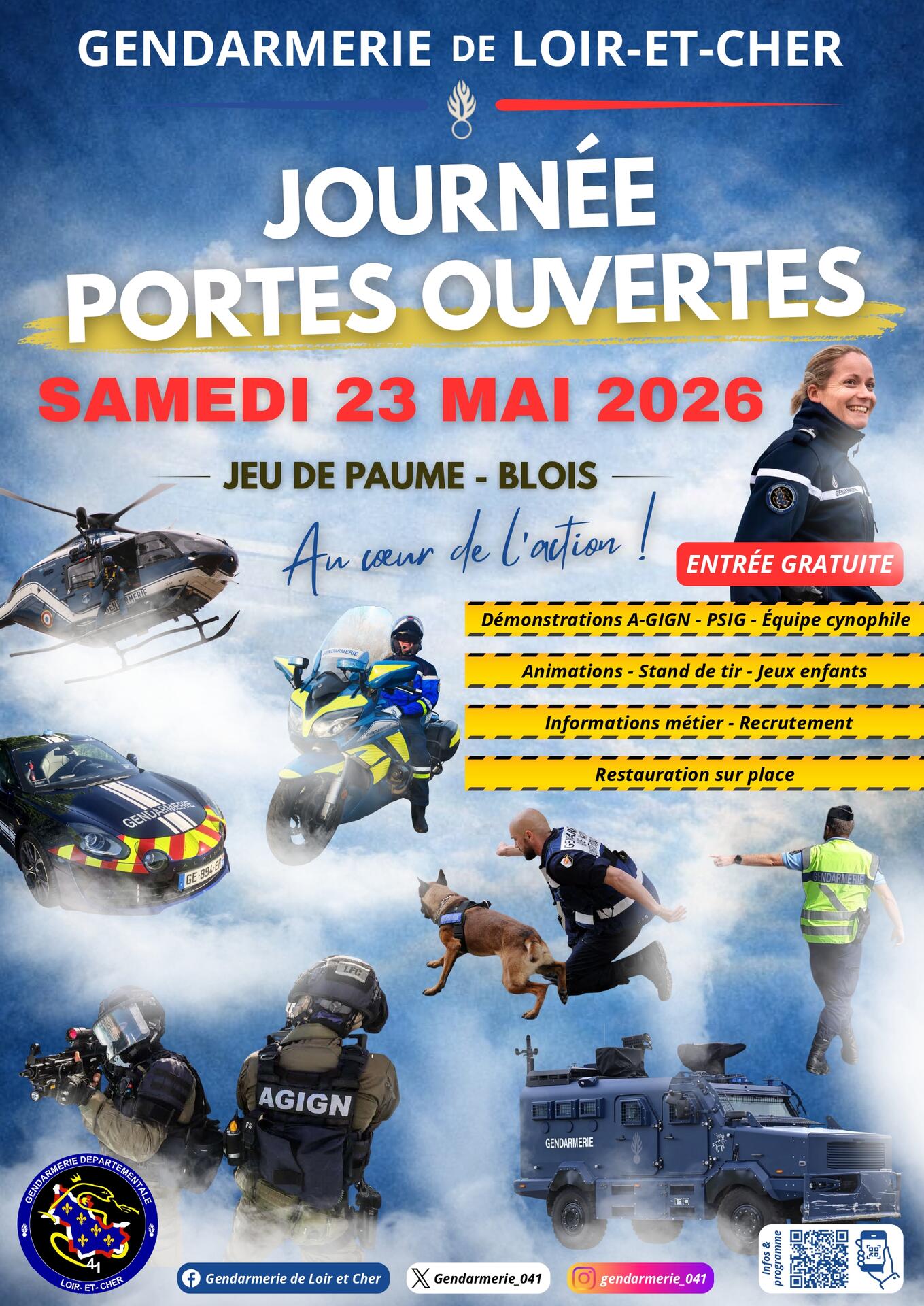 Le Groupement de Gendarmerie Départementale de Loir-et-Cher ouvre les portes du Jeu de Paume au public le samedi 23 mai 2026, de 10h à 17h.